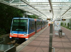 Diese Dockland Doppelgarnitur war am 04.08.06 auf der U17 im Einsatz.Sie wird noch eine Station weiter fahren und hat dann ihre Endhaltestelle Buerer Straße erreicht. |