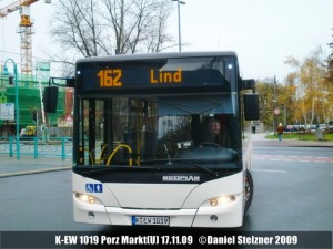 K-EW 1012 von e-weinzierl, fährt auf der KVB-125 in Ri. Weiler und steht gerade am Chorweiler Busbahnhof. |