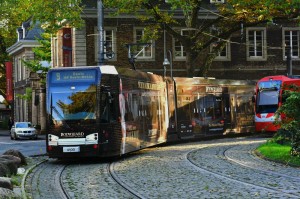 Niederflurwagen 4090 wurde die Ganzreklame "Gelbe Seiten" entfernt. Hier zu sehen auf der Neusser Straße am 21.11.2015. |
