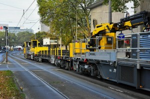 Robel 6312 (Colonia), 6613 und 6311 (Agrippina) während einem Schienentransport auf der Hahnenstraße am 04.11.2017. |