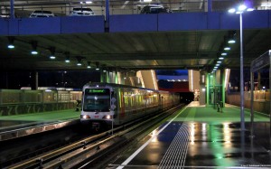 Hinten sieht man schon die große Nachbarstadt. Nach knapp einem Kilometer Viadukt und Tunnel wird der Zug den Marconiplein erreichen. |