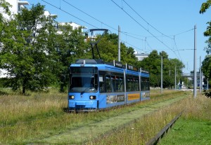 Am Maxmonument kreuzen die Linien 19 und 21 die Linie 16 (also normalerweise, ihr wisst ja, Baustellen...). Am einfachsten wäre da natürlich eine Gleiskreuzung. Aber nicht in Münchnen! Rund um das Maxmonument hat man dafür einen Straßenbahnkreisverkehr gebaut. So musste wegen der Umleitung die 16 in einer Richtung eine 3/4-Runde drehen. 2158 auf der 21 ist der Kreisverkehr aber reichlich egal. Für ihn geht es einfach quer durch.