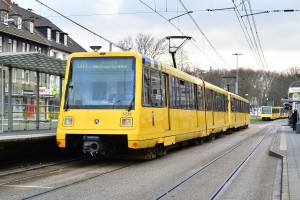 im Hintergrund der Hochflurbahnsteig für die U11 und im Vordergrund wo die Straßenbahn der BOGESTRA hält.