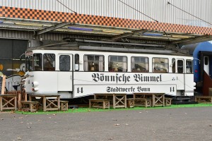 Einige Jahre ist es schon her, dass hier Fotos der Bimmel hochgeladen wurde. In der Zwischenzeit wurde der Wagen ausgemustert und dan das Base Camp in Bonn abgegeben, wo er unter einem Vordach aufgestellt wurde.
