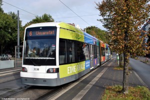 GT8N-1 erreicht am 13.10.2021 die Haltestelle "Am Stern" und ist auf der Linie 6 zur Universität im Einsatz. |