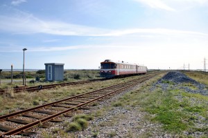 Ym/Ys 16 ist soeben in Thyborøn gestartet und erreicht gleich den Halt Thyborøn Kirke auf dem Weg in Richtung Lemvig.