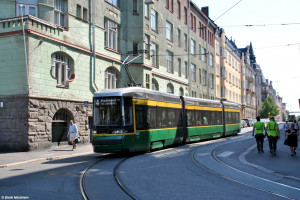 Am 28.06.2022 ist der TW 458 auf der Linie 9 nach Länsiterminaali 2 unterwegs und fährt hier gerade in Richtung Hauptbahnhof. |