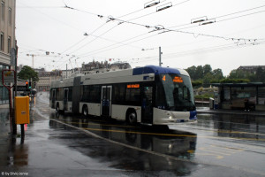 Bei garstigem Regenwetter im Batteriemodus in Lausanne unterwegs. |