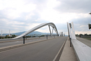 Die südliche Seite der neuen Donau-Brücke. Hier soll die Linzer Lokalbahn vsl. ab 2032 von Hafenstraße aus über die Donau nach Linz Urfahr-Ost fahren, wo Anschluss an die Straßenbahn-Linien 1 und 2 bestehen wird. |