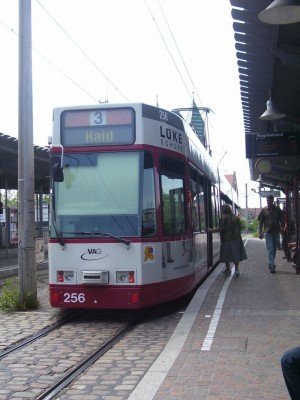 Freiburger Straßenbahn 258, kurz hinter der Haltestelle Stadttheater, 27.06.06. |