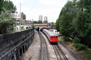 Ein All-Stations aus Watford hat grad den Bahnhof Northwood verlassen und erreicht gleich den Bahnhof Northwood Hills.