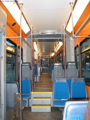 Interessante Lösung: Tür im Niederflur-Mittelteil der Linie 6 (Richtung Fluntern/Zoo). Die Klappe im unteren Teil der Tür dürfte Rollstuhlfahrern und Kinderwagenschiebern den Einstieg in den Wagen erheblich erleichtern... |