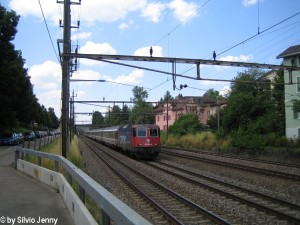 Im Sommer 05 herrschte beim SBB Personenverkehr akuter Triebfahrzeugmangel. SBB Cargo hilf mit 5 Lokomotiven aus, u.a. der Re 421 383-1 die somit nur in Binnendiensten eingesetzt wurde. |