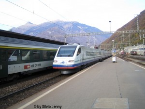 Cisalpino ETR 470 007 (wieder James Bond :-D ) bei der NEAT Baustelle Pollegio auf dem Weg Richtung Zürich - Stuttgart, leider war er schon im Schatten als ich ihn fotografierte. |