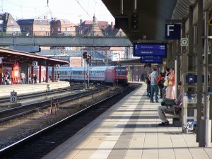 101 016 schleicht in Bonn-Bad Godesberg durch Gleis 3. Leider ist mir kein Foto vom Funkenflug am Stromabnehmer gelungen. |