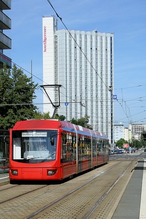 in Chemnitz zwischen den Haltestellen Treffurthstraße und Gustav-Freytag-Straße. Das Gebäude links im Bild ist die über die Stadtgrenzen hinaus bekannte Tanzschule Emmerling. |