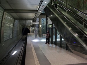 An diesem Tag war ziemlich viel los an der Haltestelle Drehbrücke. Auch der 5000er muss recht vorsichtig auf die Haltestelle zurollen... |