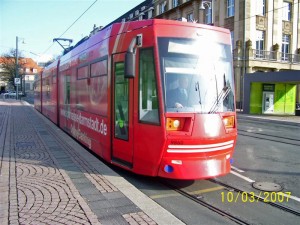Strassenbahn vom Typ ST 13 als "Schnellstrassenbahn Linie 6" an der Gleisschleife Merck in DA-Arheilgen.