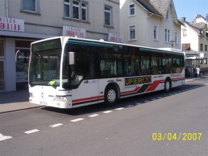 Die einzige Stadtbuslinie in Hochheim, die 826 wird von der HLB betrieben und fährt einen Ring Eltviller Strasse - Eltviller Strasse. Hier Wagen 208 am Berliner Platz wo die 46 aus Wiesbaden und die 68 aus Klein-Winternheim/Mainz enden und sich treffen. |