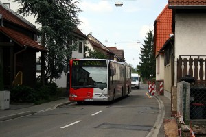 Extra für den Bus gebaute Straße zwischen Durlach Bergwald und Hohenwettersbach Taglöhnergärten. |