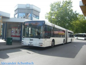 Einen von 2 MAN NG313 der RVK-Niederlassung Euskirchen habe ich am Abend des 11.07.07 am Euskirchener Bf erwischt. Er fuhr als Shuttlebus zwischen Bf und Erftstadion. Grund war ein Fußballspiel zwischen Allemania Aachen und dem FC Köln. |