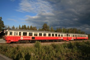 Die Inlansbana ist einen private Bahngesellschaft die heute eher touristisch orientiert ist und mit diesen Schienenbussen an einem Tag von morgens 7:00 bis abend 21:30 ca 1300Km mitten durchs nirgendwo im Landesinneren Schwedens fahren. Unterwegs wird auf Wnsch für Fotos angehalten.