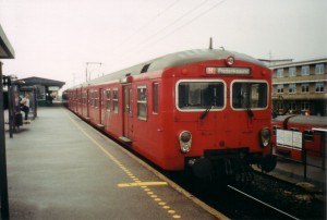2. Generationszug im Sommer 2000 in Vanløse am Ringbahnsteig. Am 23. April 2001 wurde dieser Bahnsteig geschlossen und für die Metro umgebaut. Seit 12. Oktober 2003 fährt von diesem Bahnsteig die Metro ab. |