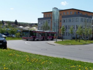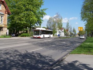 Hier auf einer recht interessanten Umleitungsstrecke zwischen den Haltestellen Baienfurt Achtalschule und der Ersatzhaltestelle Weingarten Danziger Straße. |