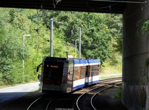 Schnellstraßenbahnlinie 6 nach Merck. |