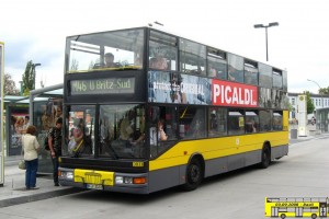 DN mit Bandwerbung für das Varietè Wintergarten. Bus ist Baujahr 1995. |