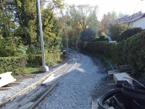 Strecke wird seit März 2008 umgebaut,da ab 2009 moderne Niederflurwagen im gemischten Betrieb mit den umgebauten Alttriebwagen auf den Berg fahren sollen. |