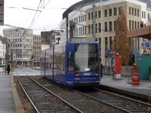 9467 ist gerade von der 61 kommend über den Gleiswechsel nach Gleis 3 eingefahren und fährt als 62 weiter nach Oberkassel. |