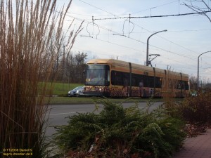 Wagen 2529 verlässt Hst. Gret - Palucca- Straße |