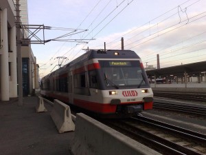 Zug von der Seite,leichte Bewegungsunschärfe.