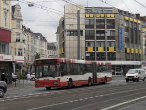 Einer der neuen alten Busse unterwegs auf der Linie 608 mit +15. |