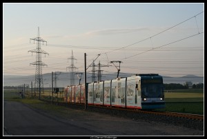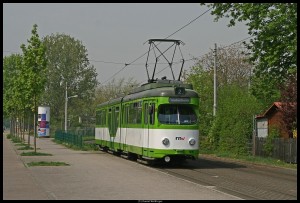 Tw 518 an der Haltestelle Alte Feuerwache, direkt am alten Messplatz gelegen. Daneben irgendein Bus. |