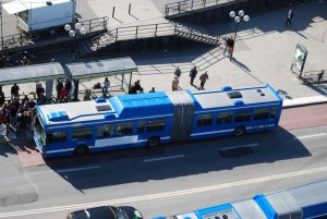 Volvo Gelenkbus von SL auf der Linie 3, hier bei der Anfahrt auf die Haltestelle "Slussen" |