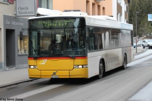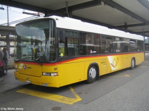 Die Churer Linie 3 wird in Zusammenarbeit mit Postauto betrieben. Somit sind das die einzigen Poschtis, die auf dem Bahnhofplatz, statt in der imposanten Halle zu sehen sind. |