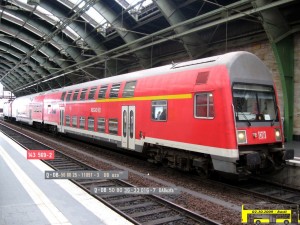 Eine 4-WagenDostogarnitur aus Schleswig Holstein auf der Stadtbahnstrecke zwischen Berlin-Ostbahnhof und Jannowitzbrücke. Das Besondere sind die Hochtürwagen. die es sonst in Berlin und Brandenburg gar nicht gibt. Es ist also ein ganz besonderes Foto. |