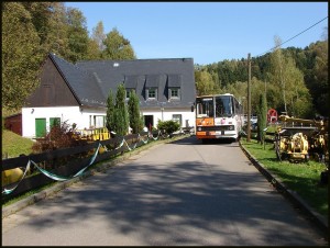 Auf der Fahrt zur BVO-Werkstatt konnte ich erstmals den einzigen 15-Meter-Bus der BVO erlegen. Nach den Erfahrungen mit diesem frühen Stück wurde bisher kein weiteres "Langeisen" beschafft. Die Probleme liegen aber Gerüchten zufolge nicht an der Länge... |
