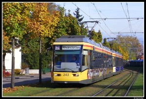 DWM Wagen 215 kurz nach verlassen der Wendeschleife Rintheim. Aufgenommen am 24.10.2009. |