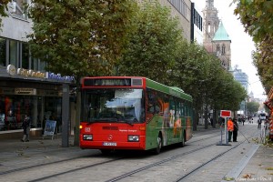 Zwischen den Haltestellen Allee Post und Rathaus.