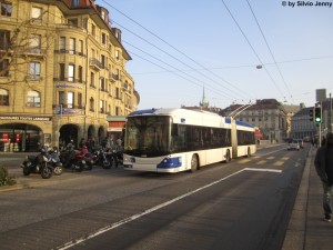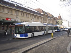 tl transports publics de la région lausannoise Hess Swisstrolley 3 BGT-N2C Lausanne Rue Neuve Vollwerbung |