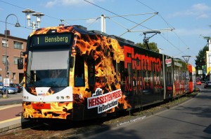 4540 trägt als achtes Fahrzeug die neue Ganzreklame "Flamme Küchen + Möbel". |