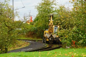 Die Gleise der ehemaligen Wendeschleife "Merkenich" werden entfernt. (28.10.2013). |