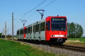 B-Wagen 2306 hat eine Neulackierung in die aktuellen KVB-Farben erhalten. Hier zu sehen an seinem ersten Linieneinsatztag nach seiner Neulackierung in Bocklemünd am 10.04.2014. |