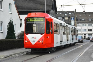 2425 (ex 2195) wurde als siebter B-Wagen der Serie 2100 saniert und zur Serie 2400 umgebaut. Hier zu sehen bei seiner ersten Ausfahrt nach seiner Sanierung auf dem Simonskaul am 22.01.2015. |