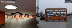 Sorry, liebe BVG, aber DAS SIEHT SCHEISSE AUS! Und das wollen die jetzt auch noch im ganzen U-Bahnhof so machen, anstatt für viel weniger Geld einfach mal die Wandpaneele zu sanieren. Schämt die BVG sich irgendwie für die 70er-Jahre oder warum macht man so einen Kack?! Es gab doch schon mal Zeiten, wo man die typischen Bahnhofsdesigns einer Epoche ausradiert hat. 50 Jahre später hat man heute seine Mühe, sie wiederherzustellen. Warum lernt man daraus nicht? Bmo und Bmu sind nun mal nachträglich in den 70ern gebaut worden, darüber kann diese 1920er-Jahre-Aufmachung auch nicht hinwegtäuschen. |