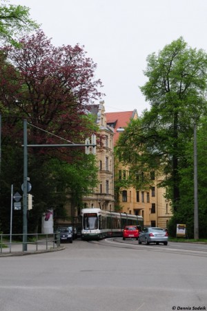 eine grüne idyllische Haltestelle mitten in Augsburg.