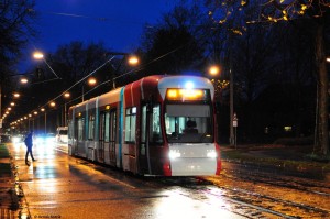 Verlässt gerade die Haltstelle in Richtung Innenstadt.